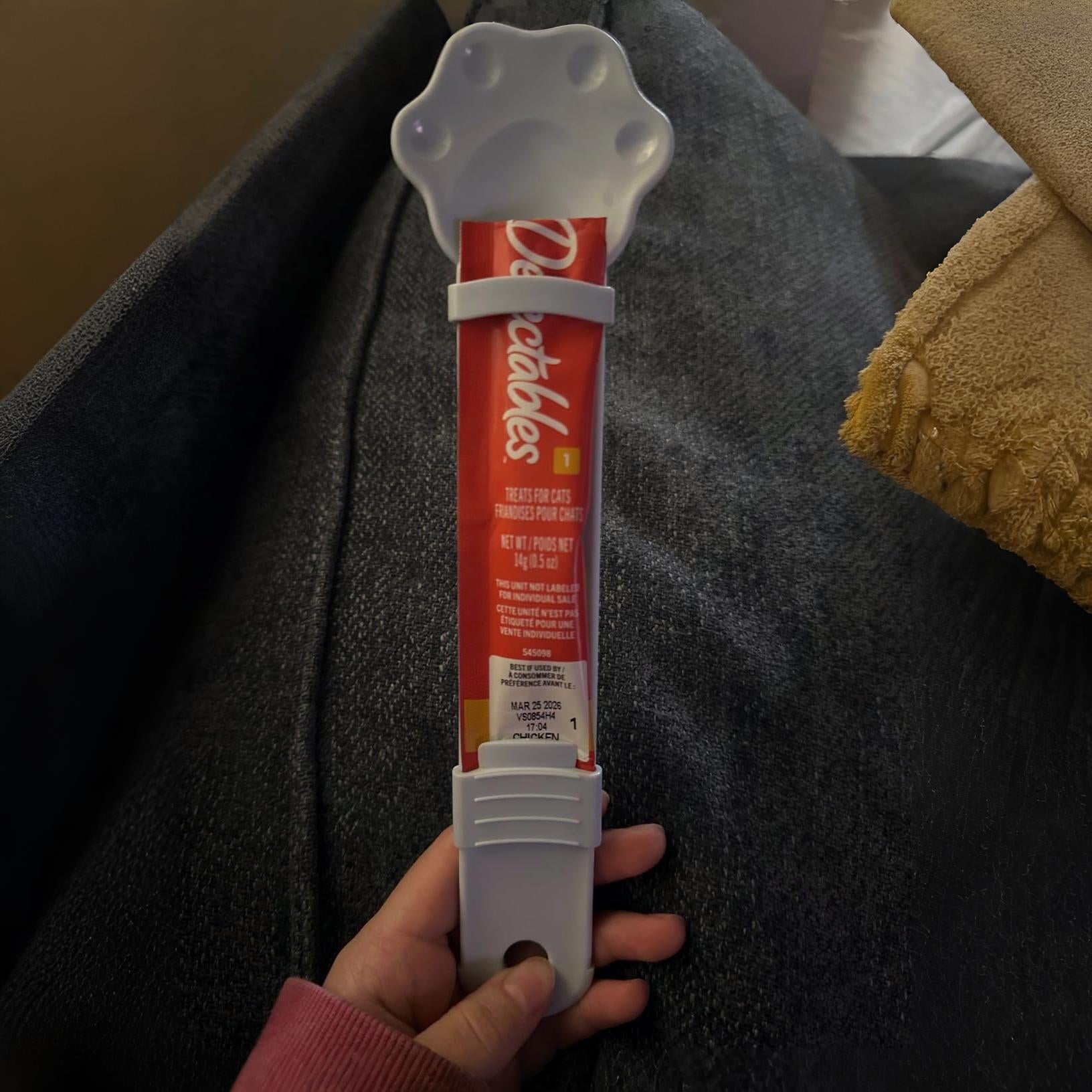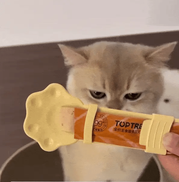 Funciona con la mayoría de las golosinas húmedas para gatos en forma de barra. Solo hay que introducir, apretar y dar de comer. No requiere aprendizaje ni esfuerzo.
