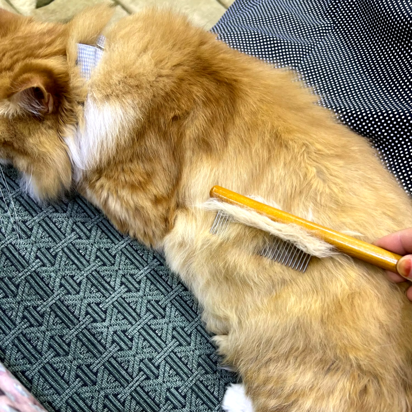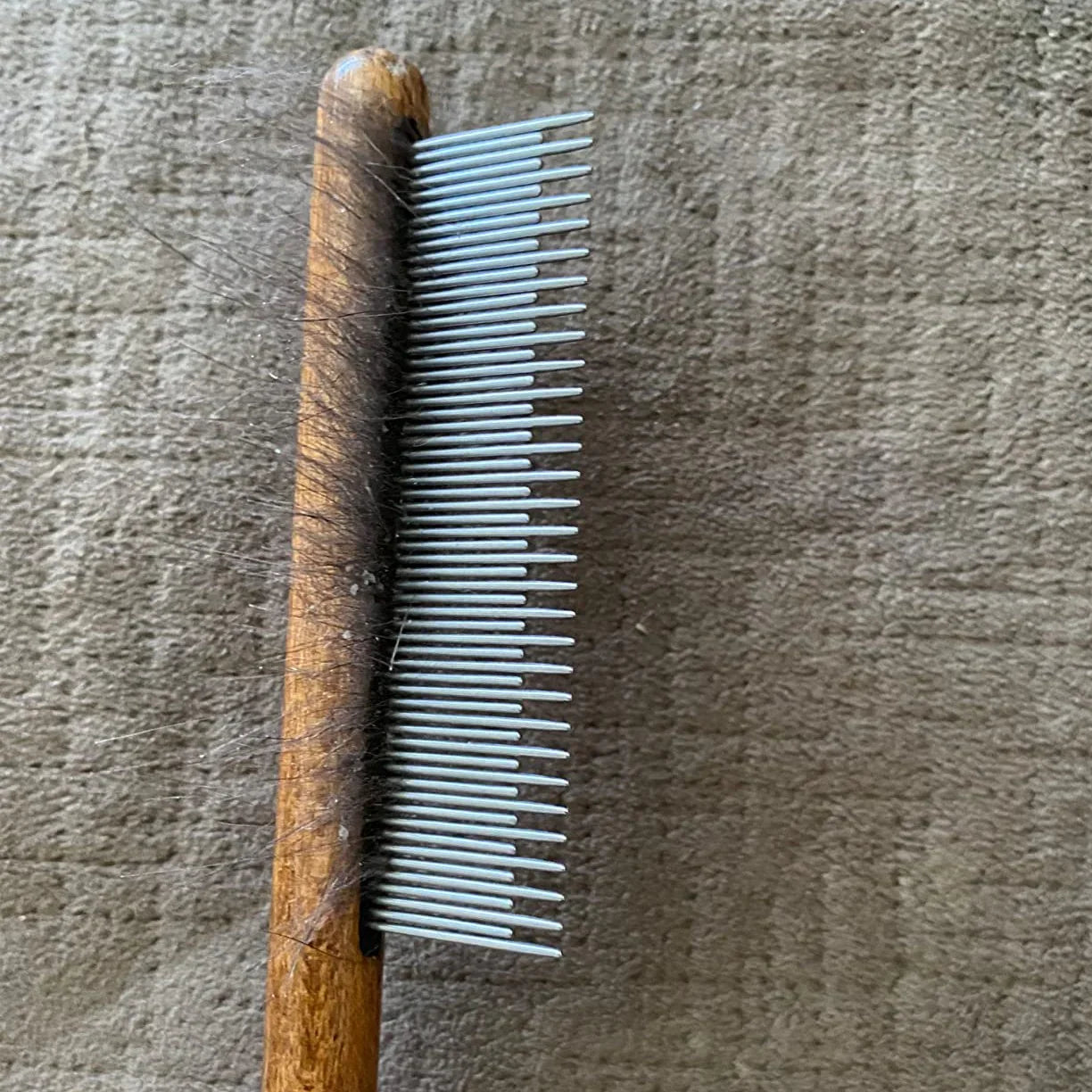 He probado varios peines, pero este es el que mejor funciona. Quita el pelo suelto sin causar ninguna molestia.