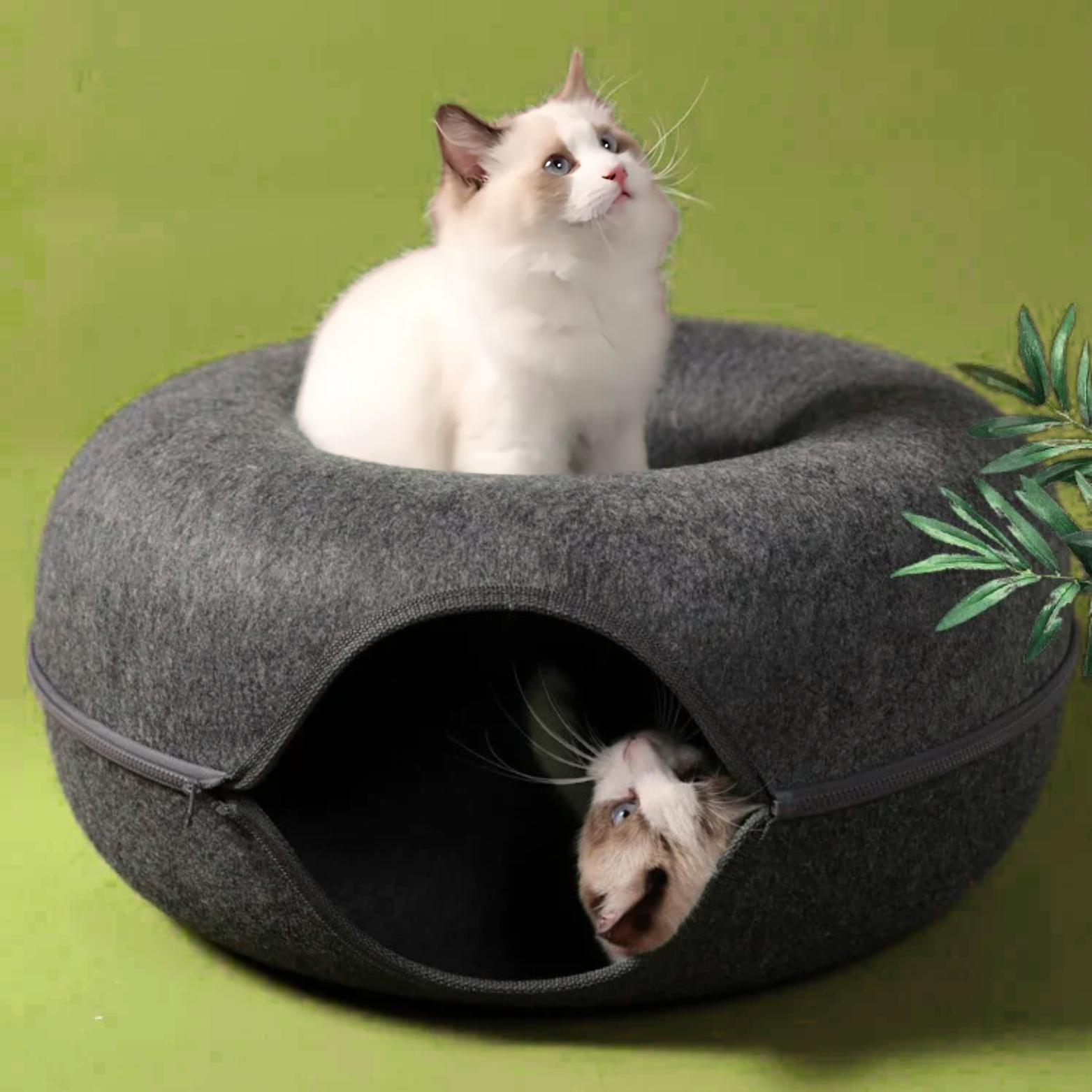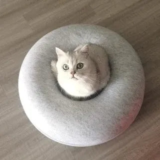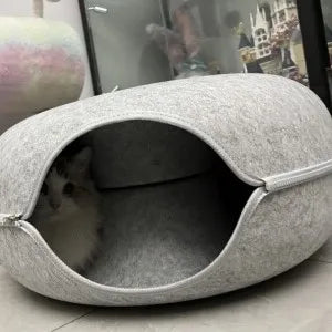 Hecha de fieltro suave y diseñada con una cremallera lisa, la Cama Donut ofrece a tu mascota un lugar acogedor para relajarse tanto si es sociable como si prefiere su espacio. Su forma moderna se integra en cualquier habitación, mientras que la parte superior desmontable facilita el cambio de cueva a cojín. Ligera, duradera y lavable a máquina para mayor comodidad diaria.
