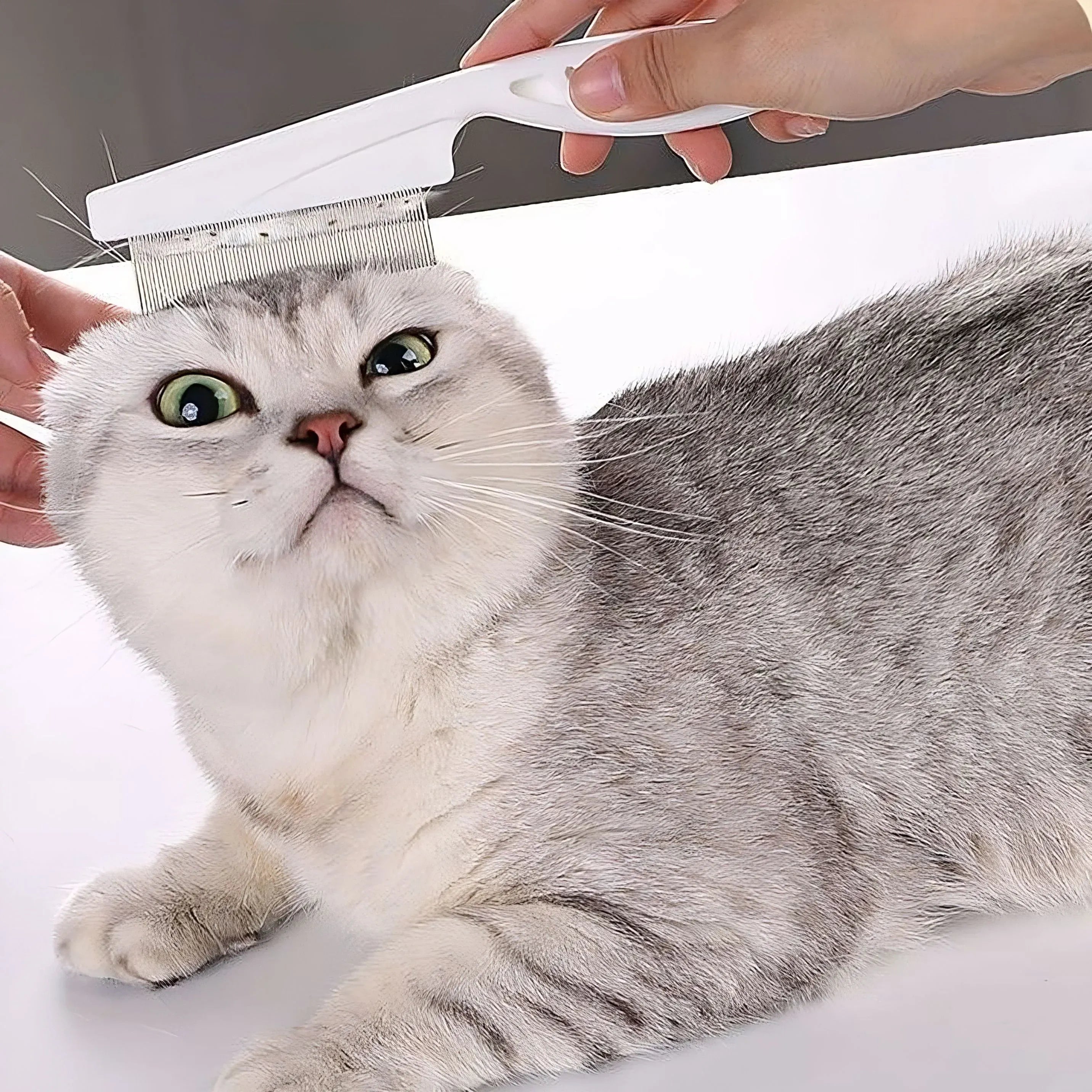 Con dientes finos y redondeados, este peine está diseñado para eliminar de forma segura y completa las pulgas, la suciedad y el exceso de pelo sin irritar la piel de tu gato.