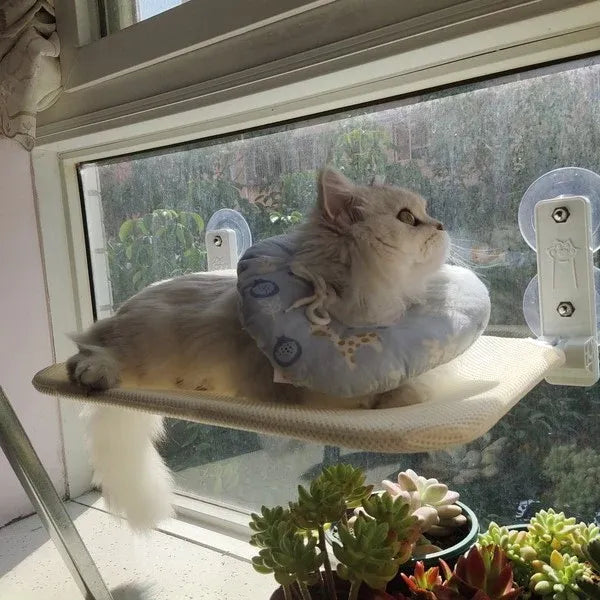 Esta hamaca plegable para ventana ofrece a las mascotas un lugar cálido y elevado para dormir la siesta mientras observan el mundo exterior. Se fija firmemente al cristal mediante fuertes ventosas y se pliega cuando no se utiliza. El tejido es transpirable y cómodo para largas sesiones de descanso, y el diseño funciona bien en espacios pequeños sin desordenar la habitación.