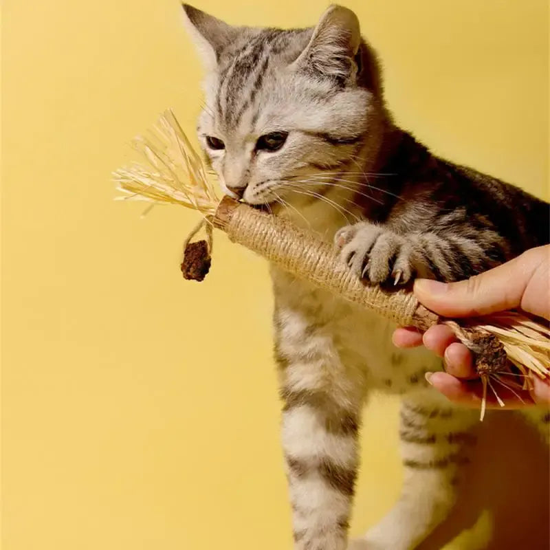 ¿Cansado de que tu gato muerda cables, muebles o cualquier cosa que encuentre? ¡El juguete mordedor natural es la solución perfecta! Hecho de plata natural y fibras duraderas, no sólo mantiene a su gato entretenido, sino que también promueve dientes y encías sanos. ¡Diga adiós a los hábitos destructivos y hola a un gatito más feliz y sano!