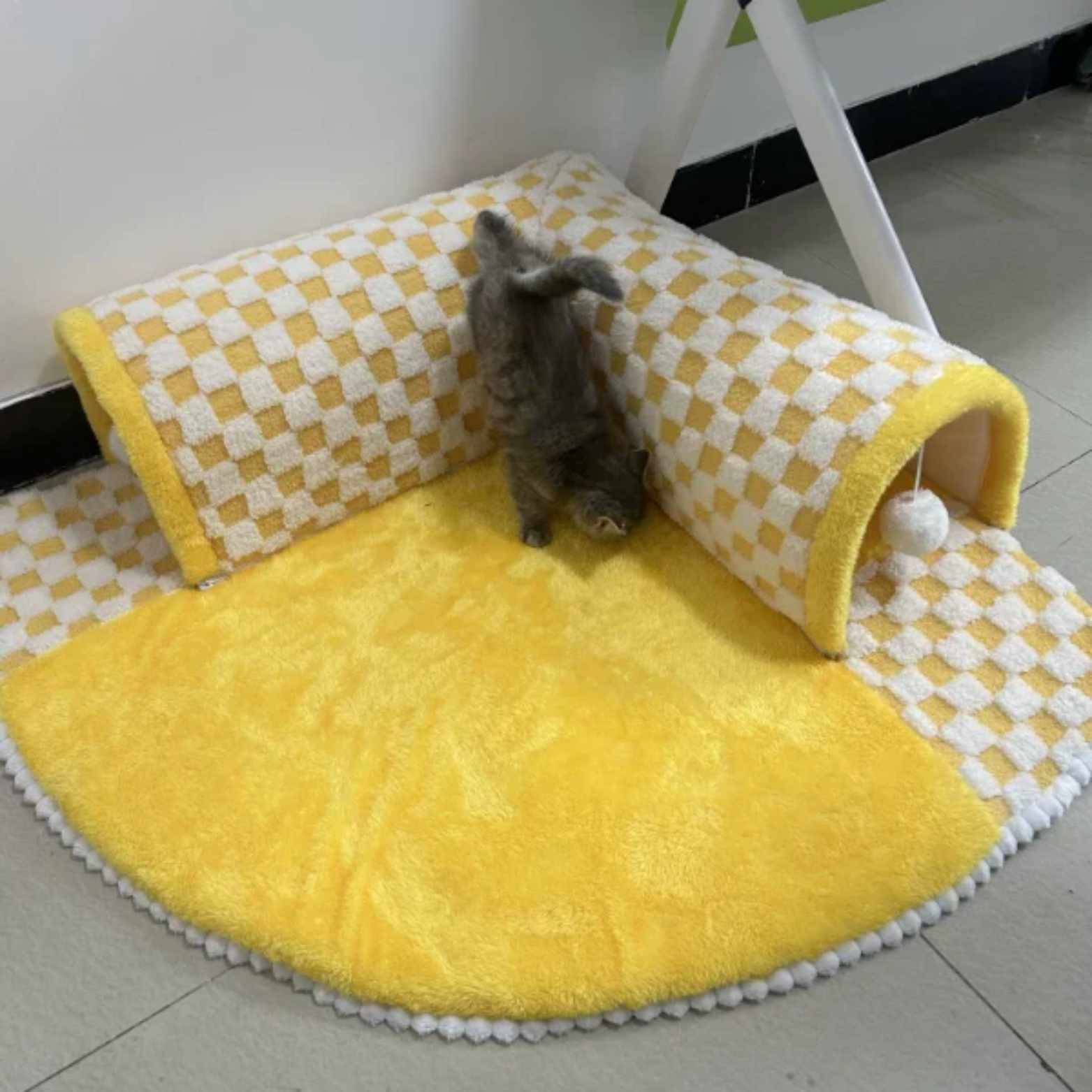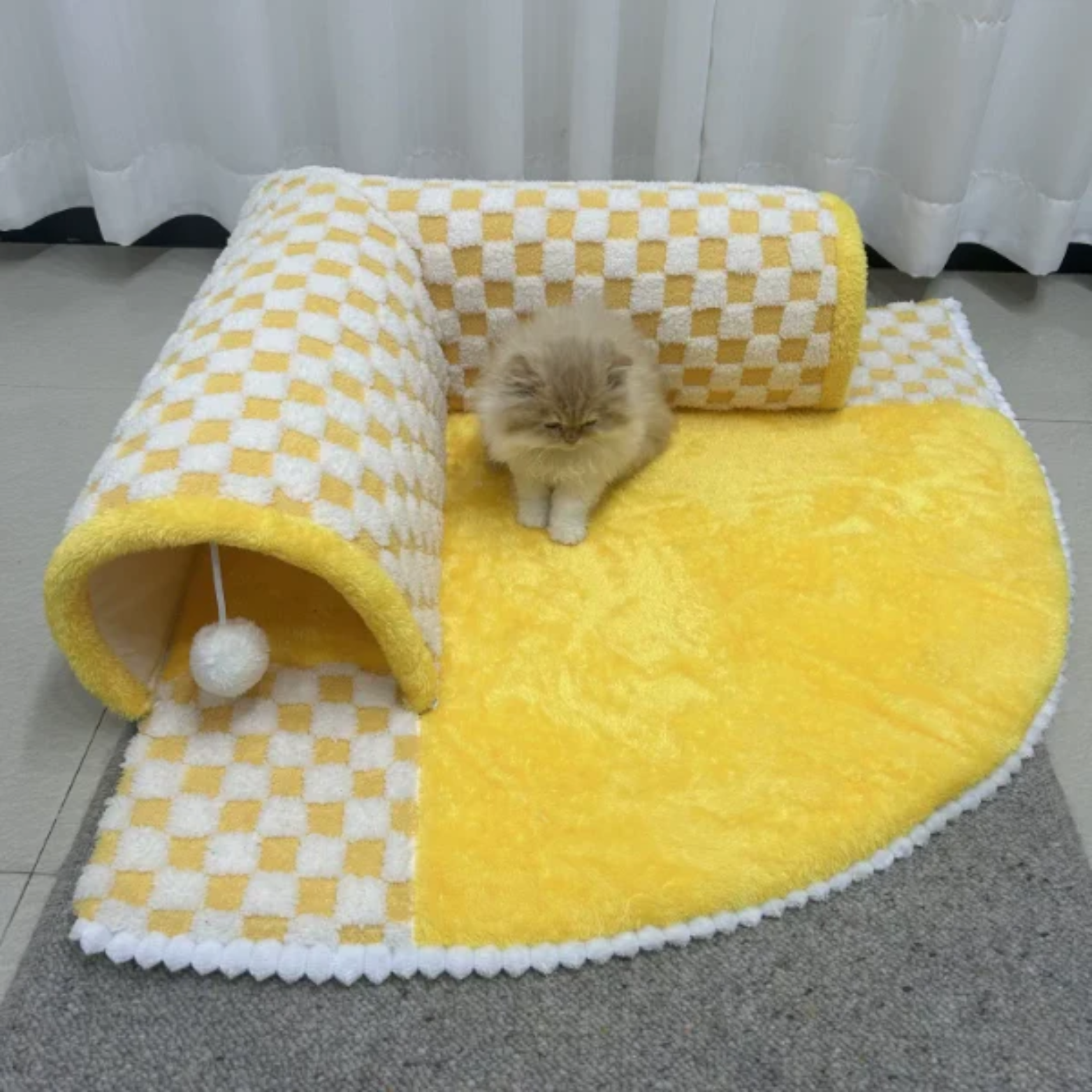 La cama Tunnel Bed no es solo un lugar para dormir, es un centro de entretenimiento y relajación todo en uno para tu gato. Con una superficie suave y mullida para la siesta y un atractivo túnel con pelotas colgantes para jugar, es el refugio definitivo para tu amigo felino.
