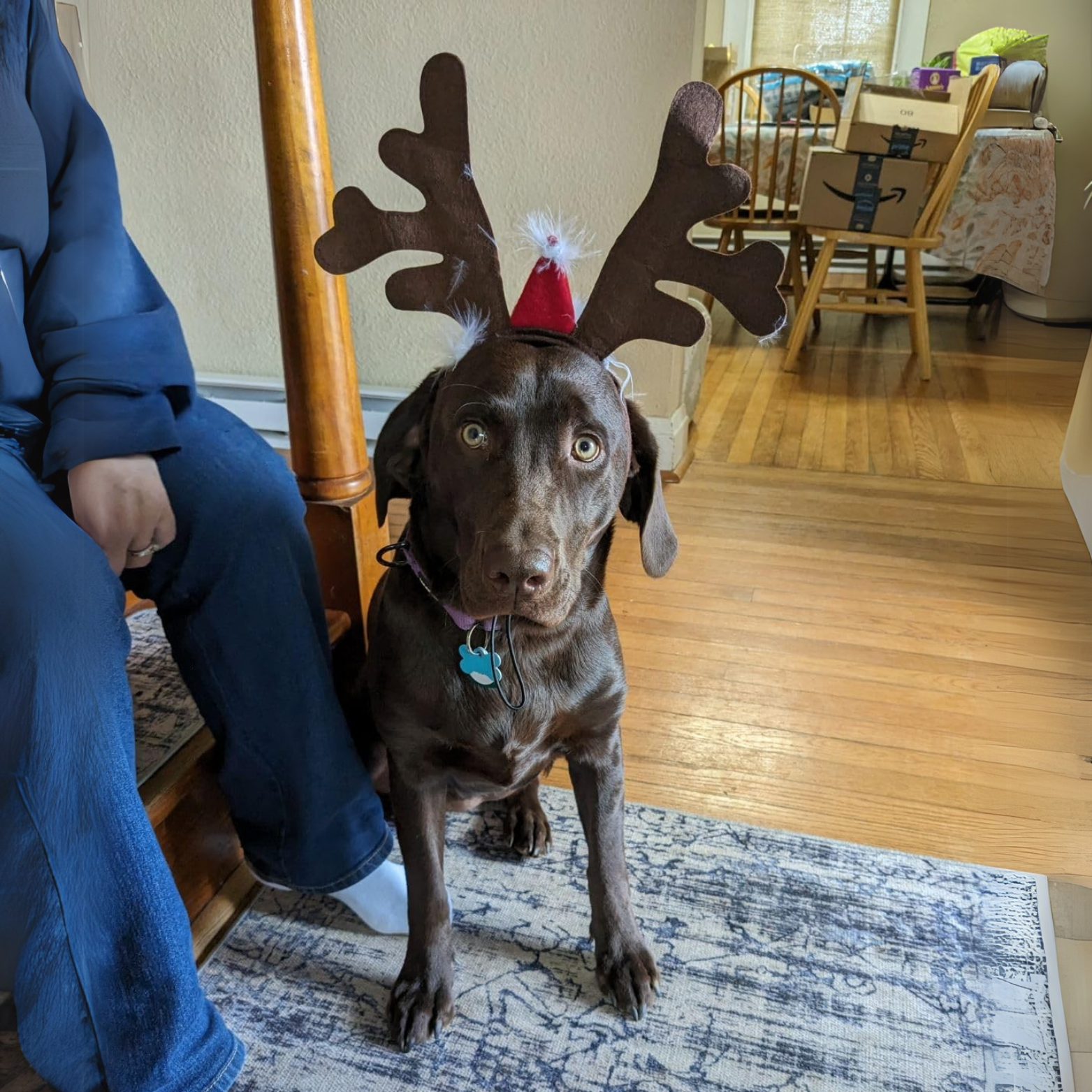 Le voir dans la neige avec ses bois était la chose la plus mignonne qui soit. C'est tellement amusant de le voir ressembler à un renne festif, cela a vraiment donné vie à l'esprit de Noël !