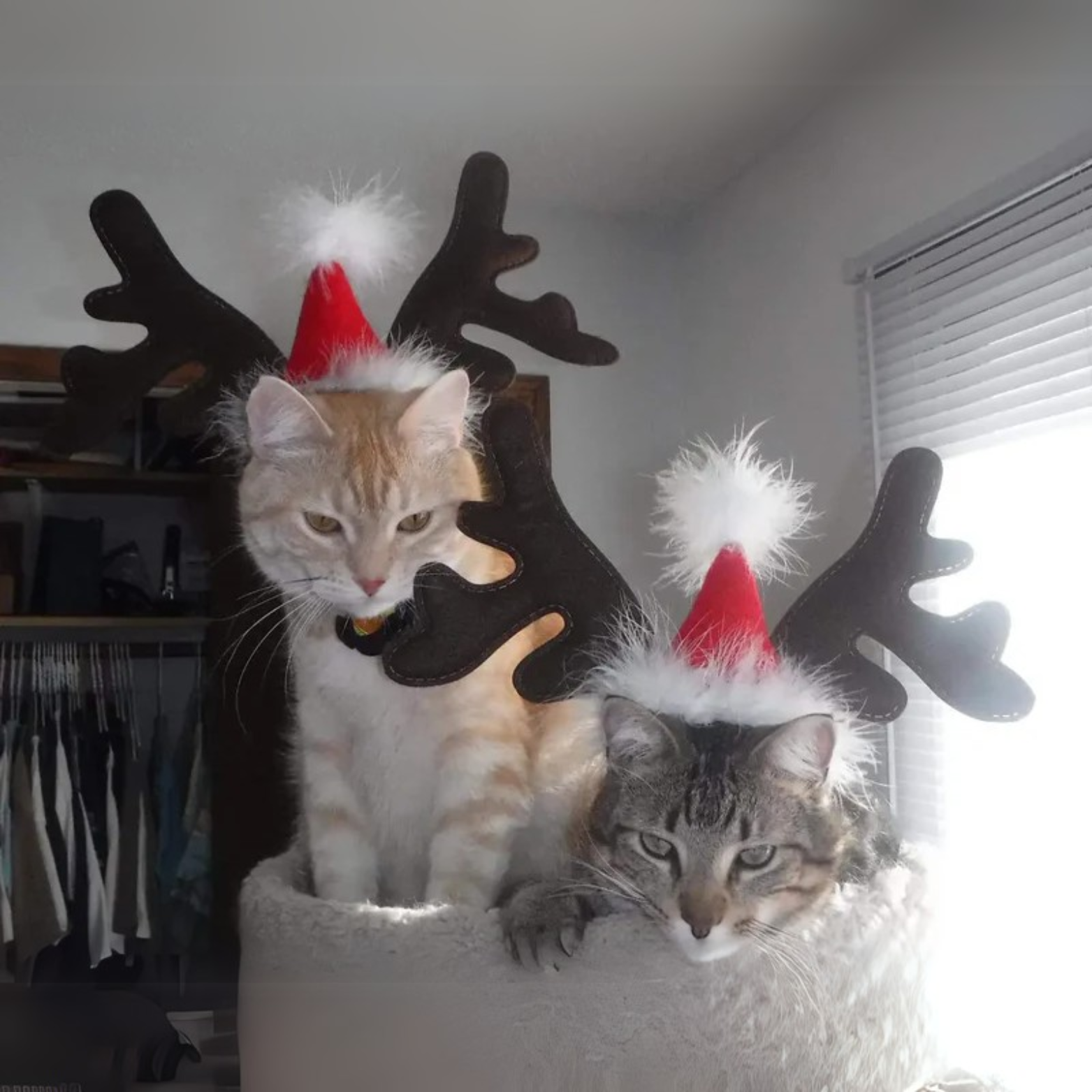 Bring joy and laughter to your Christmas celebrations with this adorable reindeer antler headband! Featuring charming antlers and a Santa hat, this accessory is perfect for creating magical holiday memories. Whether it’s for family photos, Christmas parties, or just spreading seasonal cheer, this headband adds a delightful touch. Crafted with soft velvet and cotton, it’s lightweight, comfy, and adjustable, ensuring your pet feels great while looking festive.