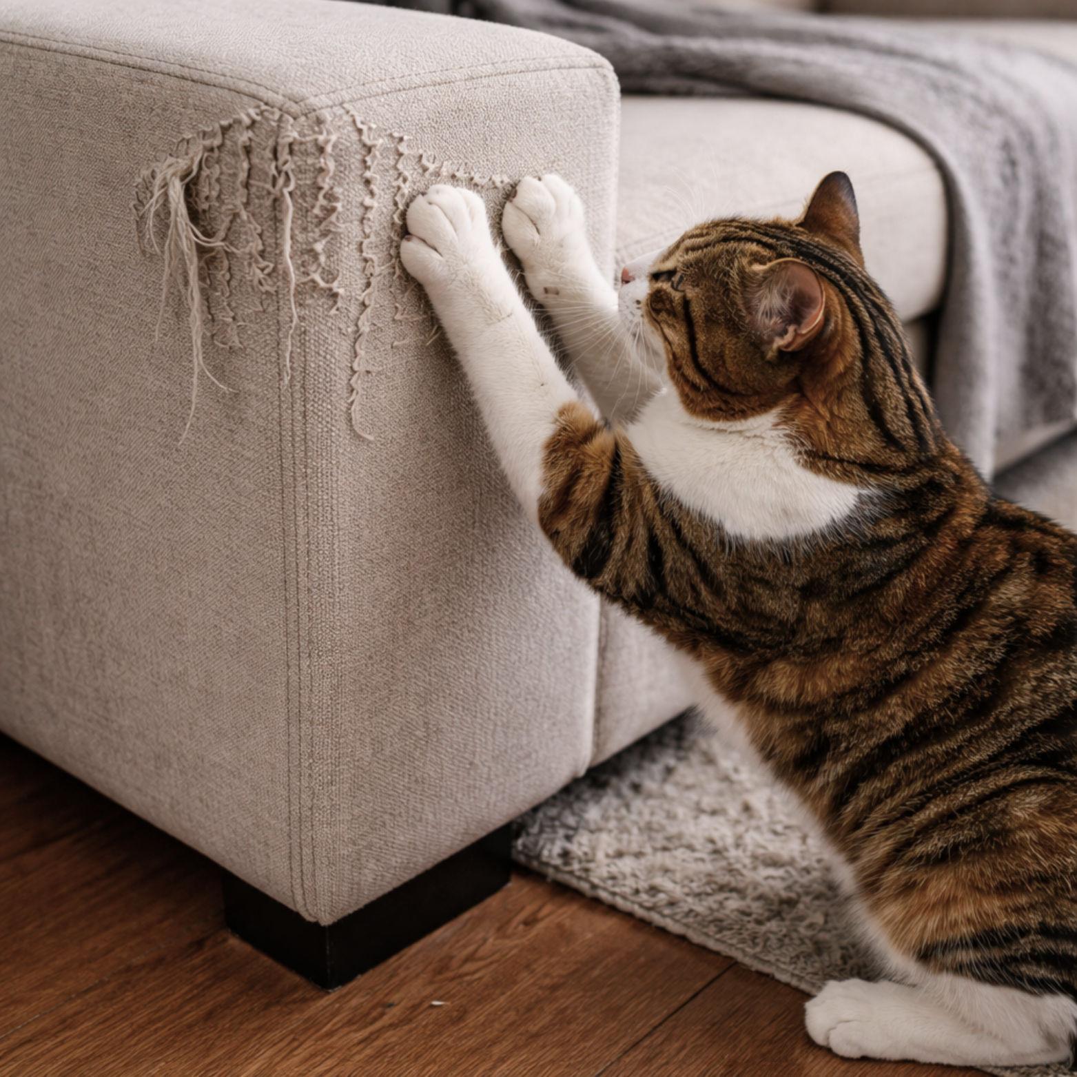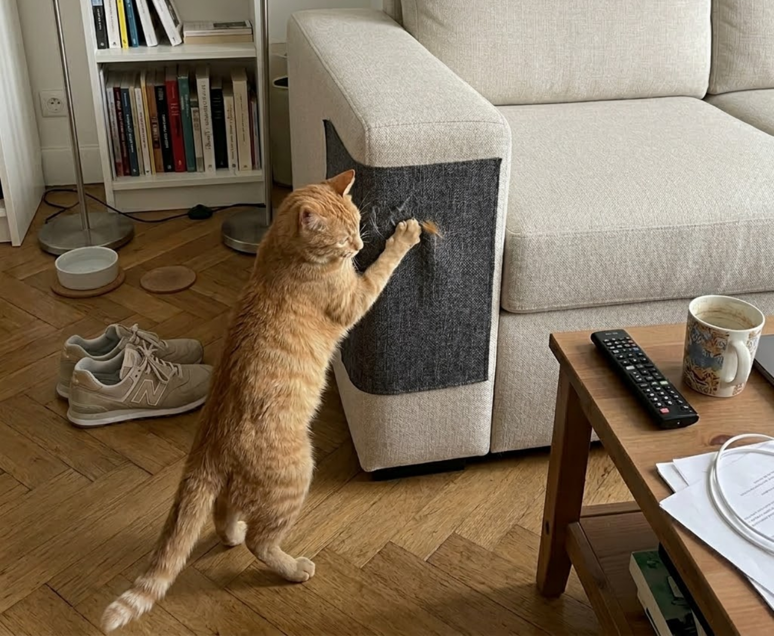 Even with a scratching post nearby, cats keep going back to that one spot.